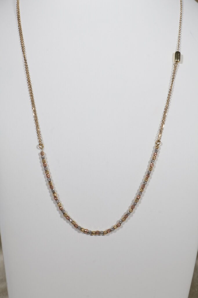 Cadena Aro Seguido Gradual 6.4gr / 40cm-60cm / 2.5mm Bolas Diamantadas Tres Oros.