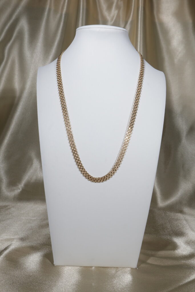 Bold and elegant, the China (Bismark) chain is a timeless design admired for its strength and distinctive shine. Crafted in authentic 18K gold, its wide 5.7 mm links create a luxurious presence that makes a statement of confidence, power, and refined style. A chain built to last—and to impress.