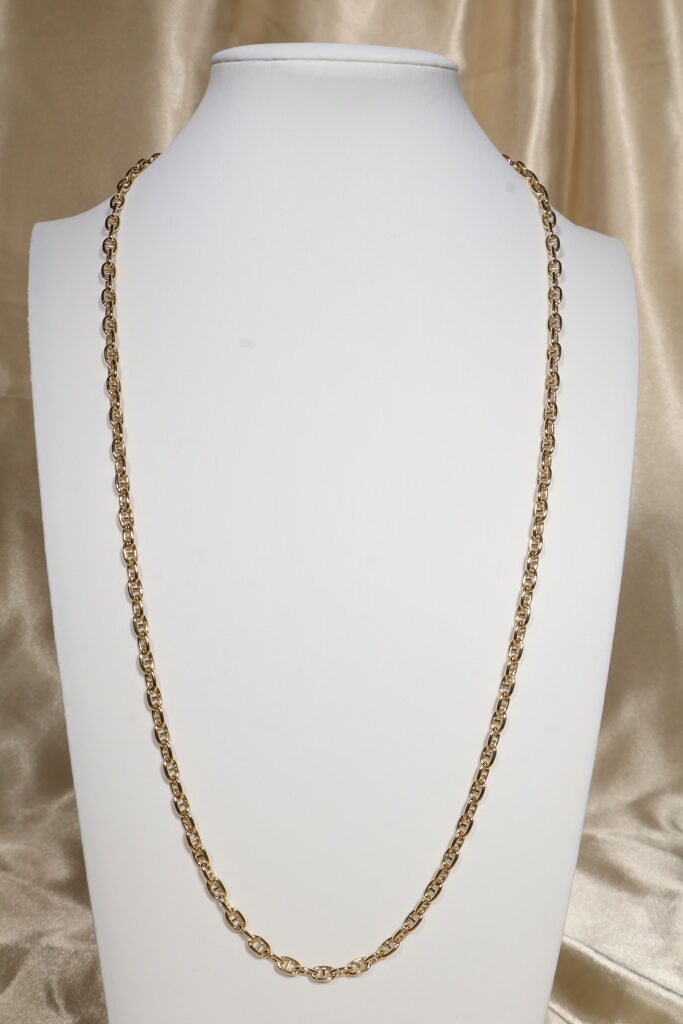 Bold and elegant, the Marinera chain is crafted in authentic 18K gold with its signature oval link design inspired by nautical style. With a solid 11.5 g weight and 60 cm length, it combines strength, shine, and timeless sophistication—perfect as a statement piece.