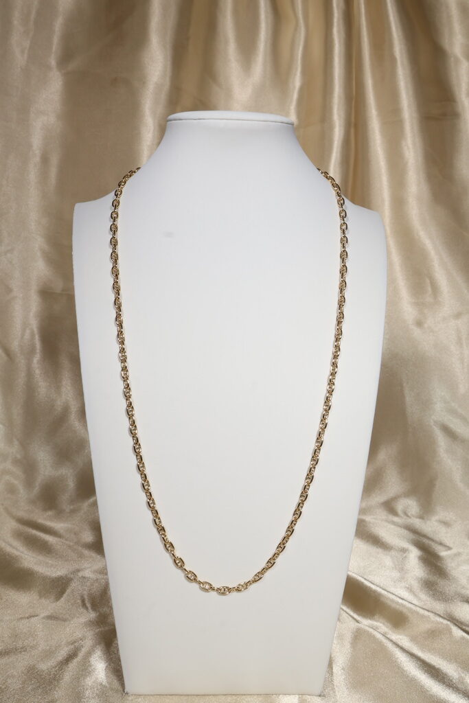 Bold and elegant, the Marinera chain is crafted in authentic 18K gold with its signature oval link design inspired by nautical style. With a solid 11.5 g weight and 60 cm length, it combines strength, shine, and timeless sophistication—perfect as a statement piece.
