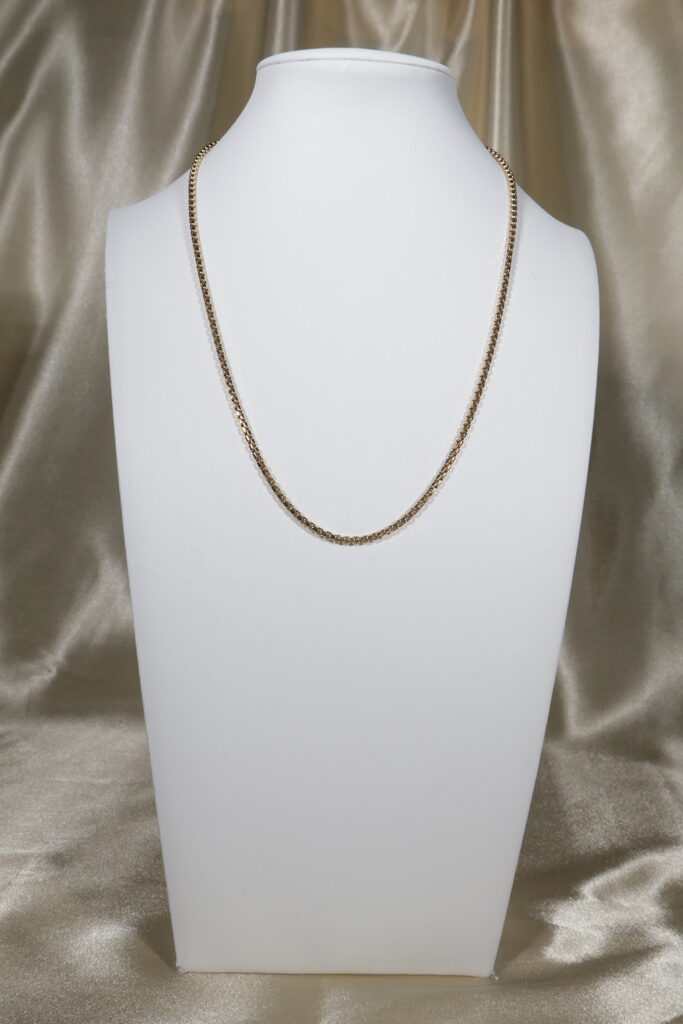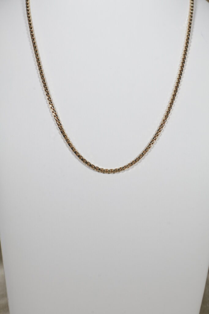 Elegant and versatile, the Venetian chain is known for its refined box-link design that delivers both durability and shine. Crafted in authentic 18K gold, this 3 mm chain offers solid weight and timeless style—perfect to wear alone or paired with a pendant.