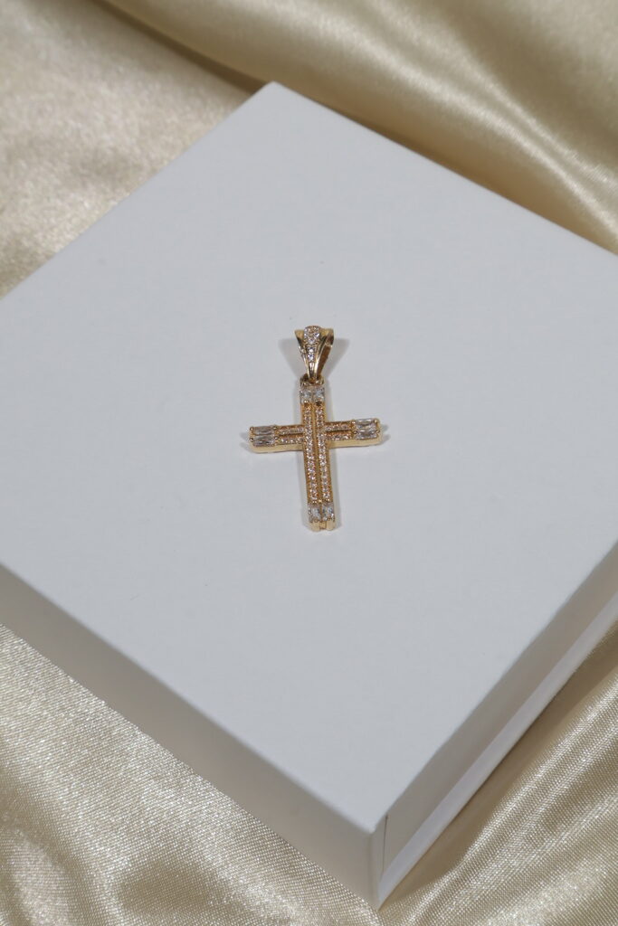 Cross Pendant with White Zirconia – 18K Gold (N)