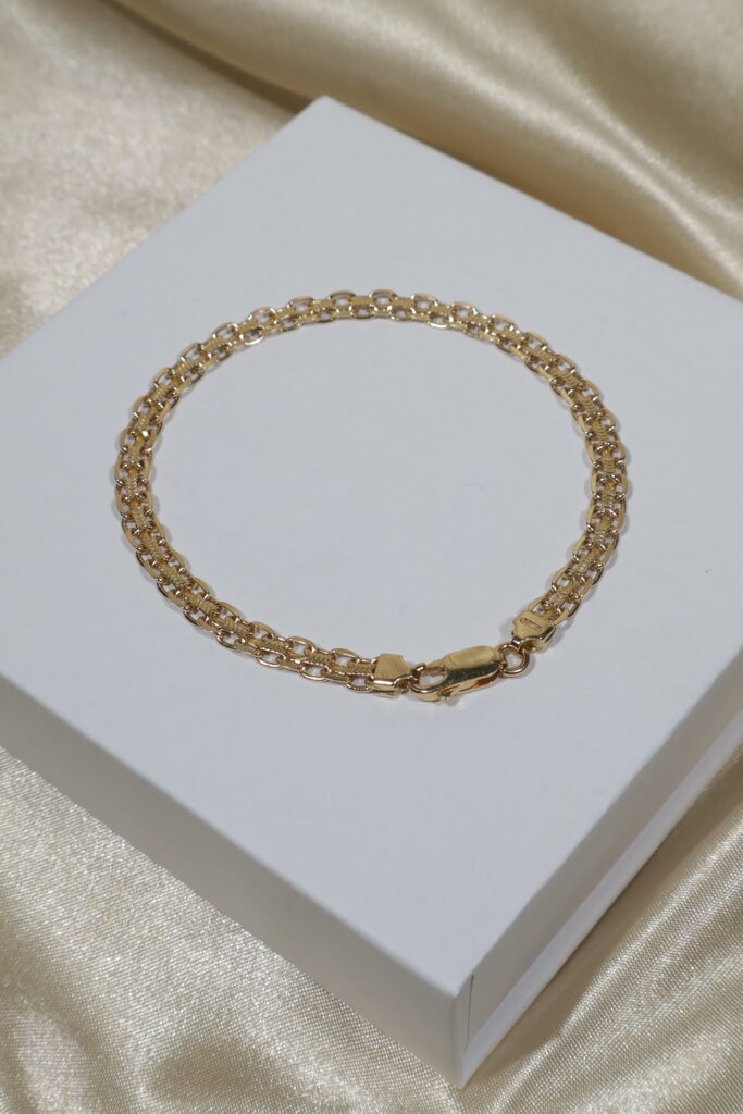 Strong and sophisticated, the China (Bismark) bracelet is crafted in authentic 18K gold with a bold 4.2 mm link design. Its solid weight and polished finish make it a timeless piece that blends strength, elegance, and lasting value—perfect for daily wear or as a standout addition to any collection.