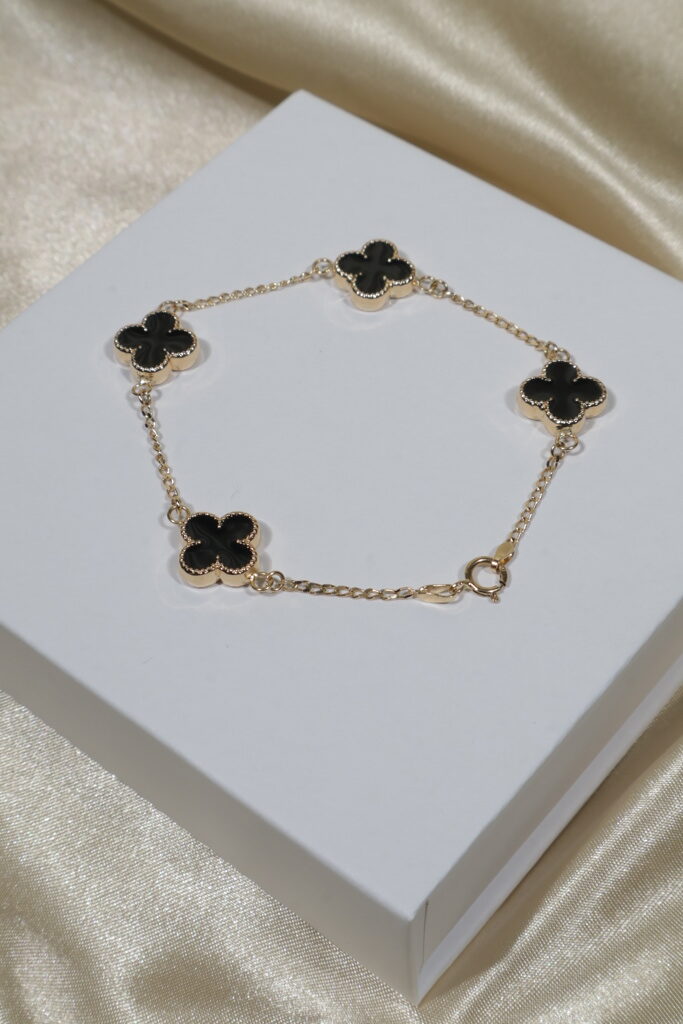 Delicate yet meaningful, the Trébol Espiga bracelet combines fine craftsmanship with a touch of symbolism. Its unique design blends elegance with everyday versatility, while the black electrostatic detail adds a modern contrast to the classic brilliance of 18K gold. A refined piece that carries both style and value.